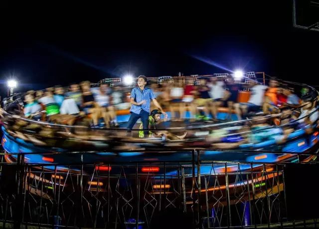 哥斯达黎加的一间牛仔游乐园里,一个类似于“龙卷风”的游乐设施在疯狂地旋转,站在中间的男孩儿像一个总指挥在向机器施加着强大的旋转魔力。