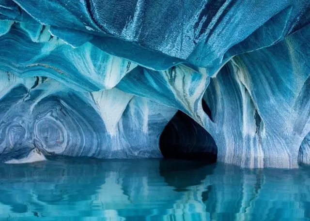摄影师经历了10个小时车程、穿过一条长长的泥泞土路,到达了这个令人惊叹的天然大理石洞穴,自然光的映照下,这些带着复杂纹路的蓝色漩涡让人感觉非常神奇迷幻。