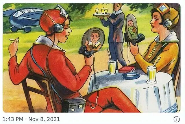 12.1930年代,艺术家对未来科技的憧憬,飞机变成私人交通工具,可视电话流行。