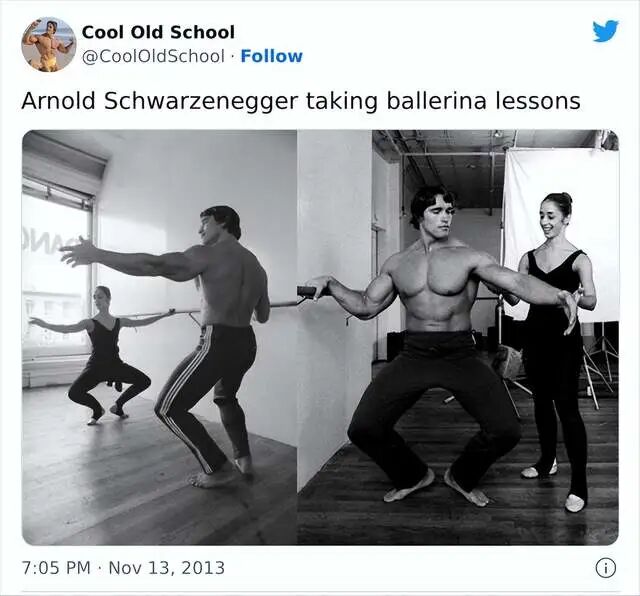1.1967年,20岁的阿诺德·施瓦辛格正在上芭蕾舞课,一身的肌肉看上去相当柔美。