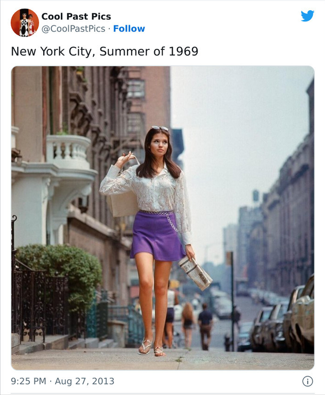 7.1969年纽约的夏天,一个女孩行走在大街上,这身穿搭即使是在现在也不过时。