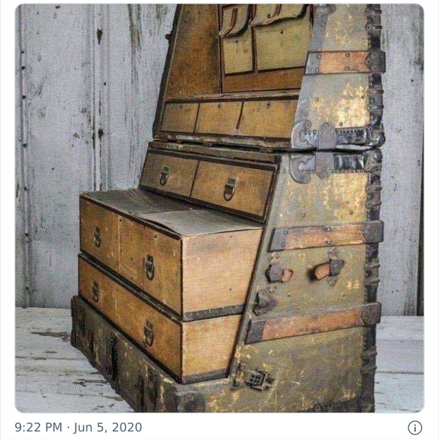 5.这只1890年代用汽船箱改造的梳妆台,可以最大限度的利用空间。