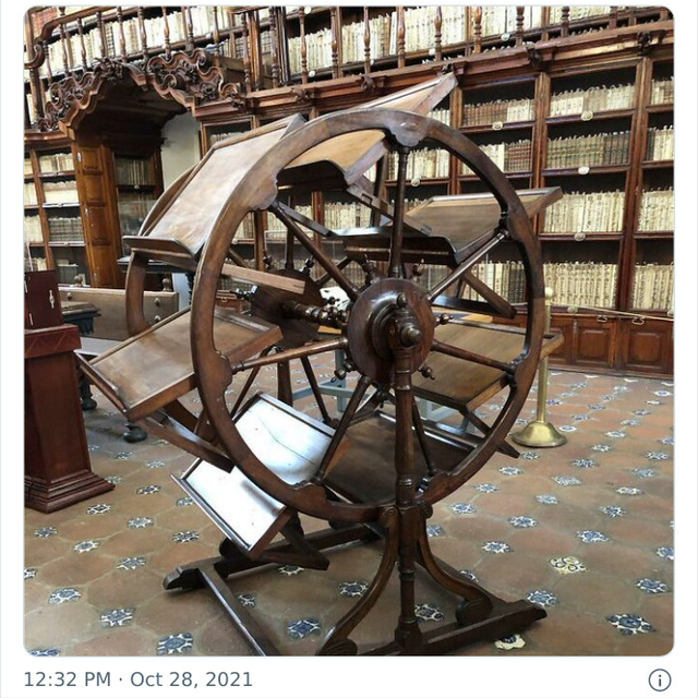 13.有300年历史的图书馆工具,使研究人员能够同时打开七本书。不知道是不是受到我水车的启发。