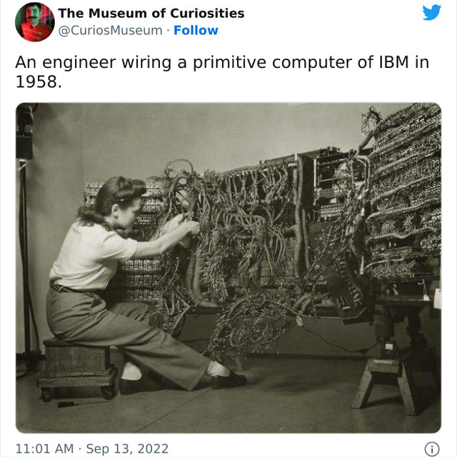 16.1958年,一位工程师给IBM的原始计算机布线。