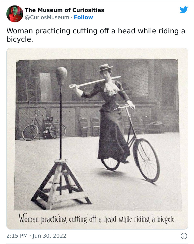 18.1800年代,一个骑自行车练习拼杀的女人。