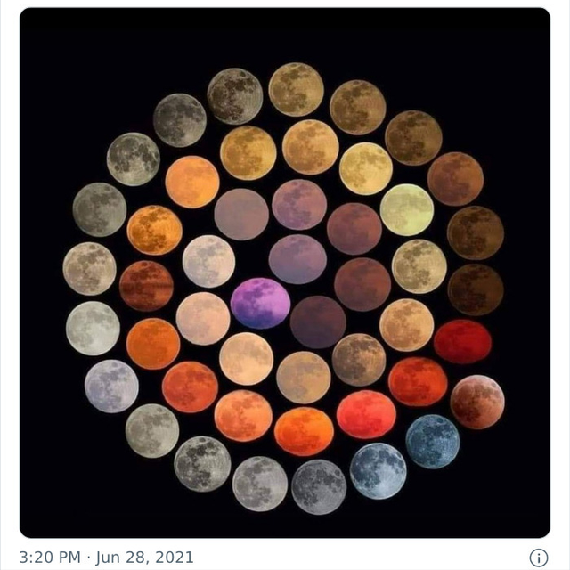 2.摄影师用10年时间拍摄了48种不同颜色的月球照片,原来月亮还有这么多种颜色。