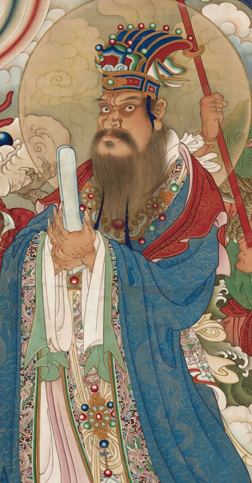 娑竭罗龙王,梵名 Sāgara-nāgarāja。又作娑伽罗龙王。娑竭罗,意译为海。娑竭罗龙王意为“咸海之龙”。即咸海中一百七十七龙王中第七龙王也。八大龙王之一。依其所住之海而得名。今独列此龙王者,谓是大权菩萨,位居十地之中,示现龙身,处於咸海。若降雨时,先布密云,端坐举念,其雨普洽。常随佛会,护法护民,其利甚博。龙宫居大海底,纵广八万由旬,七重宫墙,七重栏楯,七重罗网,七重行树,周匝皆以七宝严饰,无数众鸟和鸣。所居宫殿,七宝严饰,与天无异。然诸龙皆为金翅鸟所食,仅娑竭罗龙王、难陀龙王等十六龙王幸免此难。佛寺中,为身穿帝王服的龙王像。他的女儿即辅佐观世音的龙女。