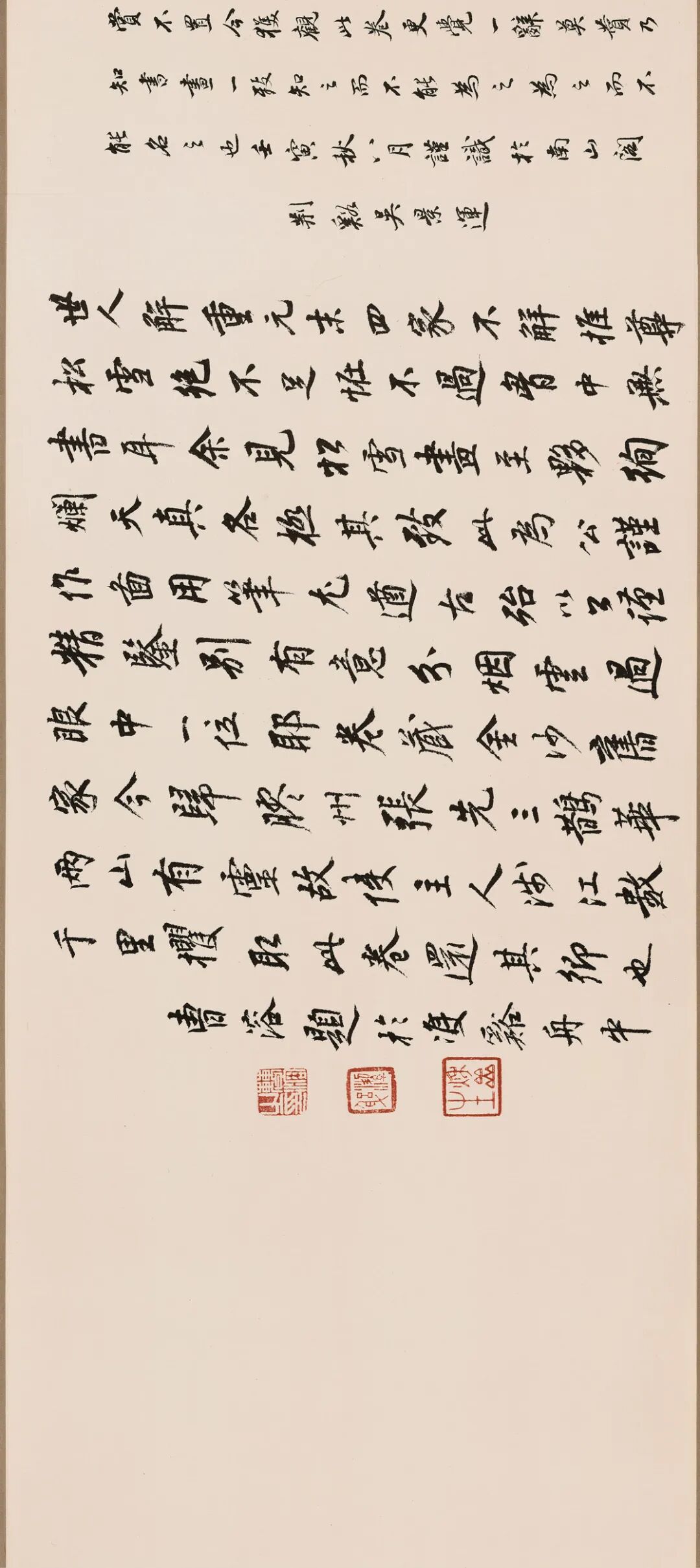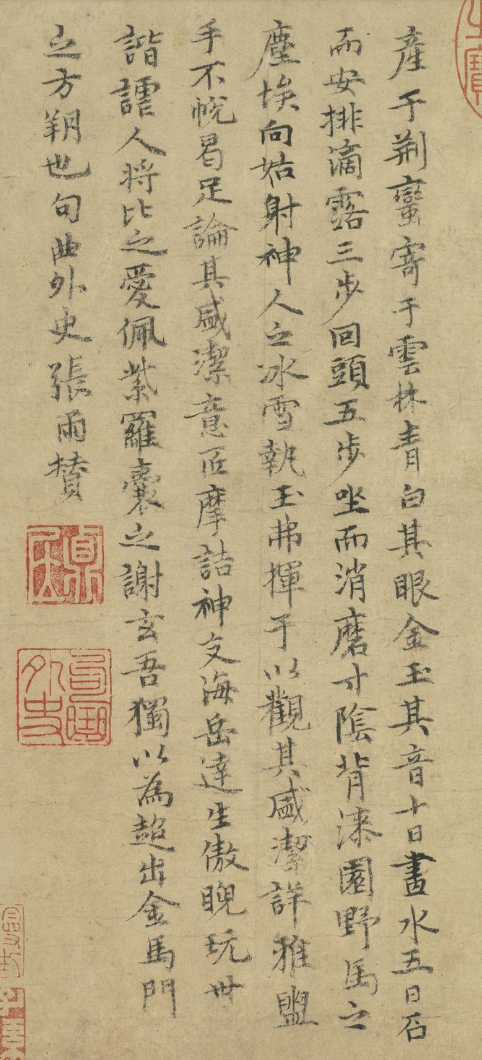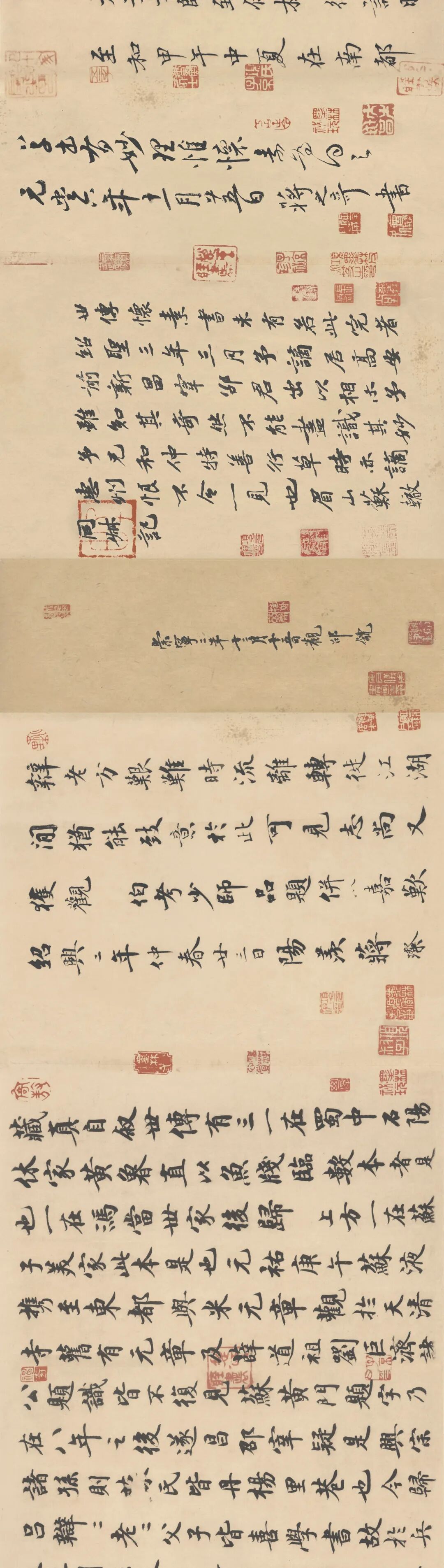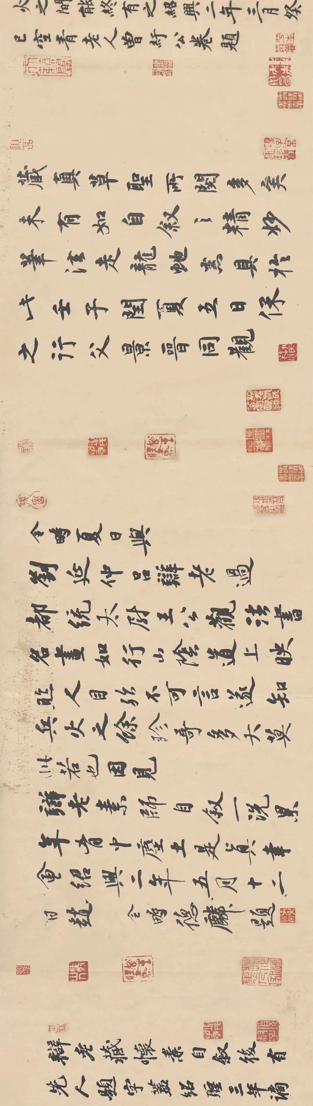 它不仅在乾隆十一年(1746年)与王献之的《中秋帖》以及王珣的《伯远帖》合称“三希”,一起放在宫内“三希堂”中,成为“三希堂”第一珍品。而且乾隆皇帝还在接下来的五十年间于《快雪时晴帖》上共亲自御笔题识71则,晚年因视力不佳,写不动了,又让董诰代笔三则,可见乾隆皇帝对此帖之热爱。
