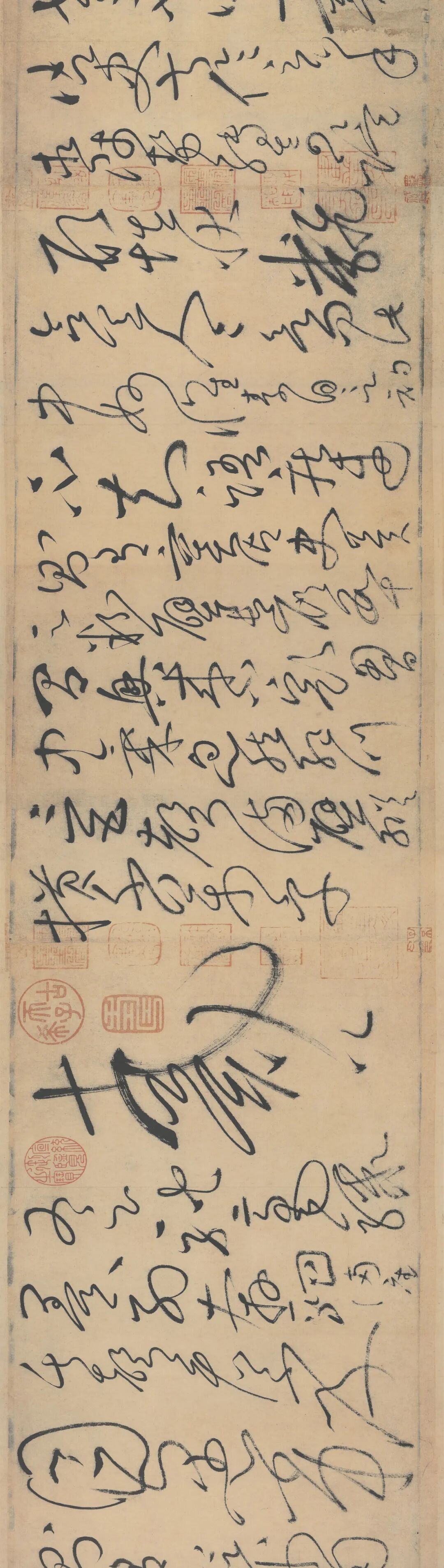 这件中国书法史上极为重要的名迹,直至今日仍在引发着不断的讨论。正如历史上对怀素的讨论,同样热烈,王世贞亦是其中一员。他认为,怀素的草书得“二张”(张芝、张旭)草圣:“藏真书虽从‘二张’草圣中来,而结法极谨密。微有不可识者,或从心时波磔不应手也。”(《艺苑卮言》)不过在王世贞看来,张旭和怀素都还是“笔多学少”,有书才而无书学。