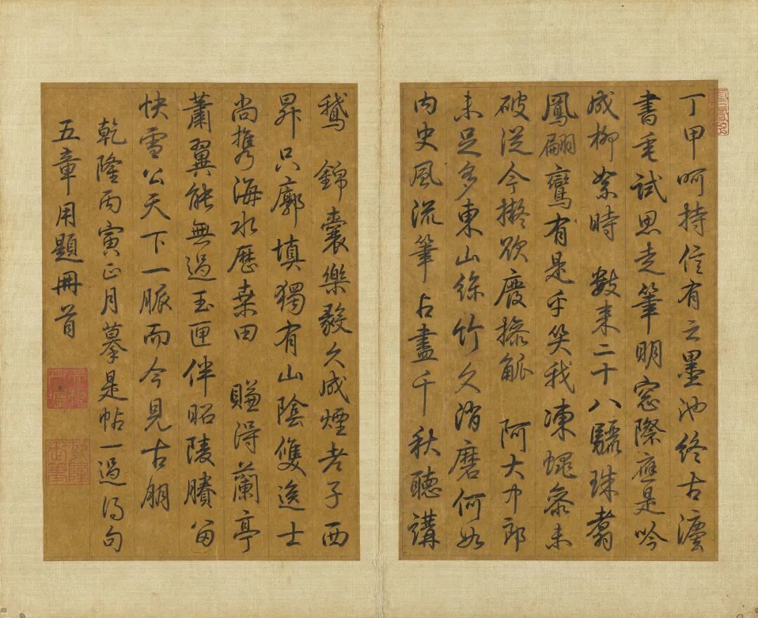 另外对比书法不难发现,乾隆皇帝的书法笔画圆润藏锋,与《快雪时晴帖》颇为相似,其取法大概也来自于此吧。