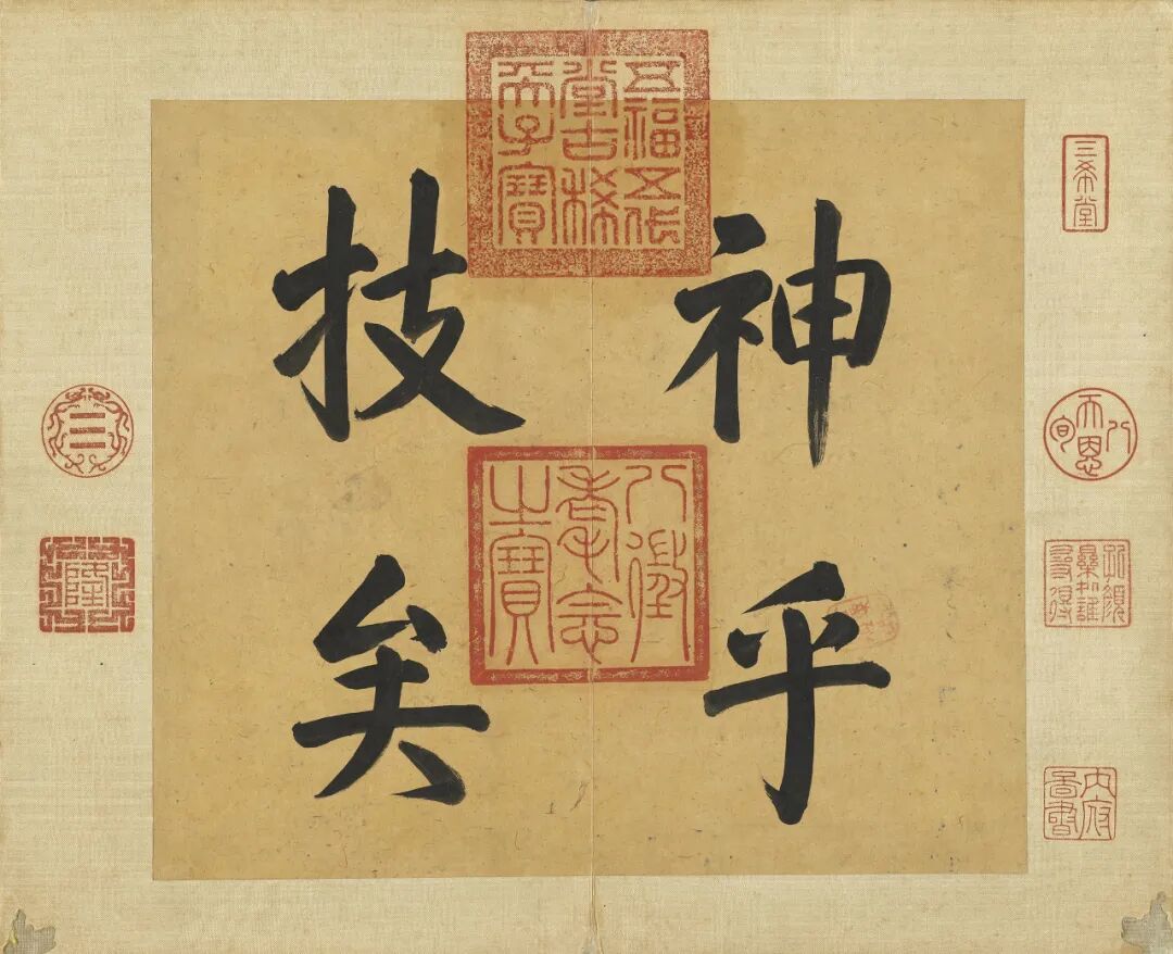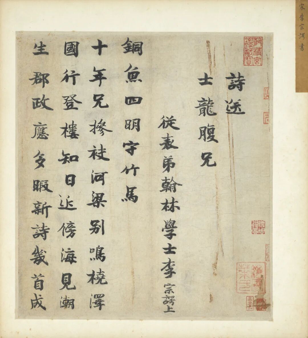 本幅《诗帖》为传世所见徽宗书法字迹中最大者,字大近5寸,行笔于瘦金体中属刚劲一格。