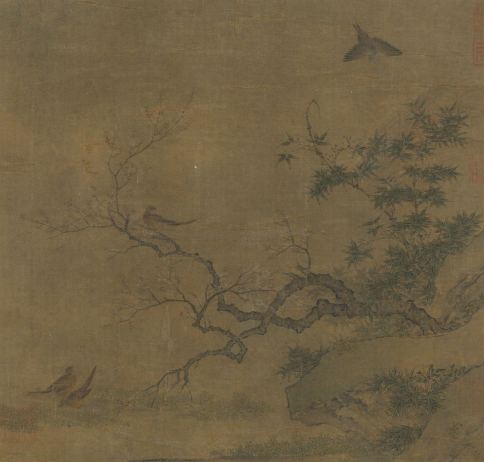 此件赵孟頫《鹊华秋色图》被认为是王氏家族所藏赵孟頫作品之一,晚明王砢玉《珊瑚网》中著录指出,此作为王世贞其弟王世懋所藏。不过,在现存《鹊华秋色图》上,并不见王氏兄弟题跋及钤印。