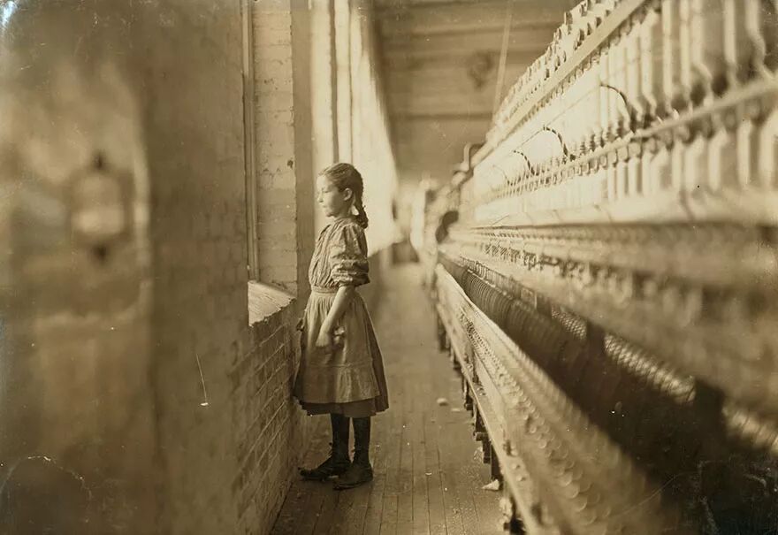 一个名叫Lewis Hine(刘易斯·海因)的摄影师,在1908年的时候,就选择辞去自己教师的工作,拿着相机奔走在美国的各个工厂和农场,记录了当时这些可怜的童工的生活。