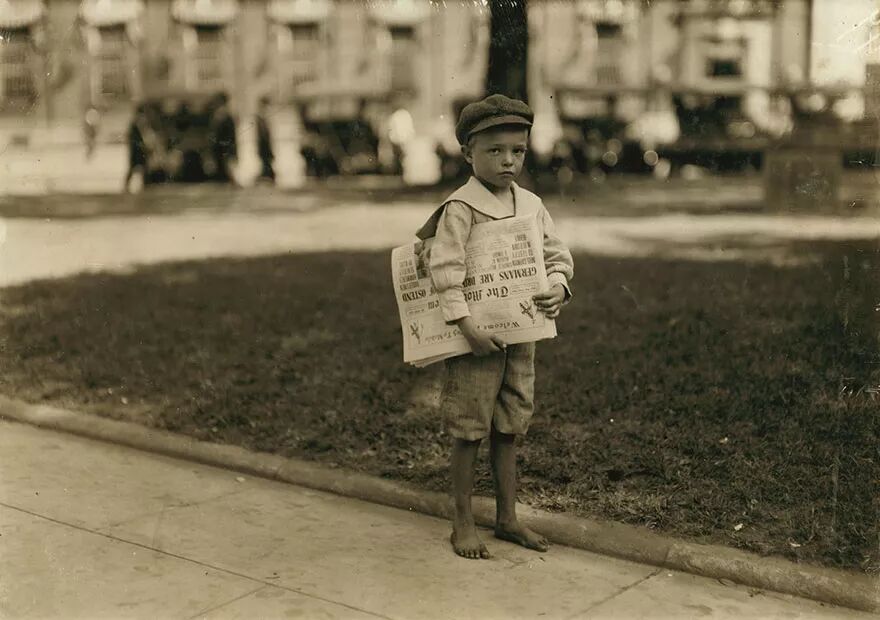 这个7岁的小男孩是一个报童,尽管当时成立了儿童保护协会,但是调查员的倾力工作仍然没有办法保全这些城市里的孩子们。