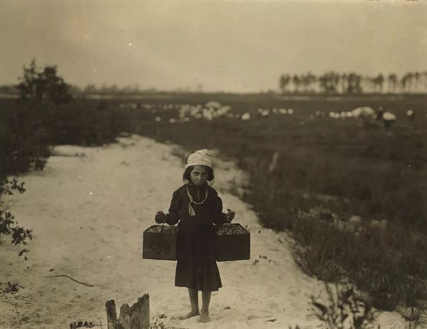 这个是拍摄于新泽西州的一个家庭,一家几口全部都在农场上工作,最小的孩子只有3岁,大一点的6岁,最大的9岁,三个孩子都没有去上学。
