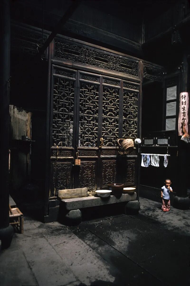 注释:棠樾村中追逐摄影者的好奇孩童。现在这些孩童大多年近半百,他们可能并未意识到,自己的孩提岁月的彩色形象被大洋彼岸的摄影者所收录。如他们能看到自己,并回忆起过往,也是一种幸福。