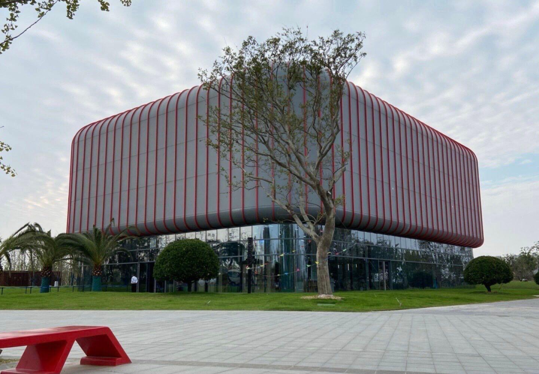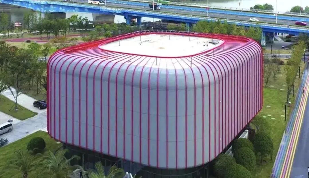 建筑简介:两个“巨型轮胎”一横一竖,局部细节看起来好像不错,但看向整体两个“轮胎”拼凑起来像极了大马桶。