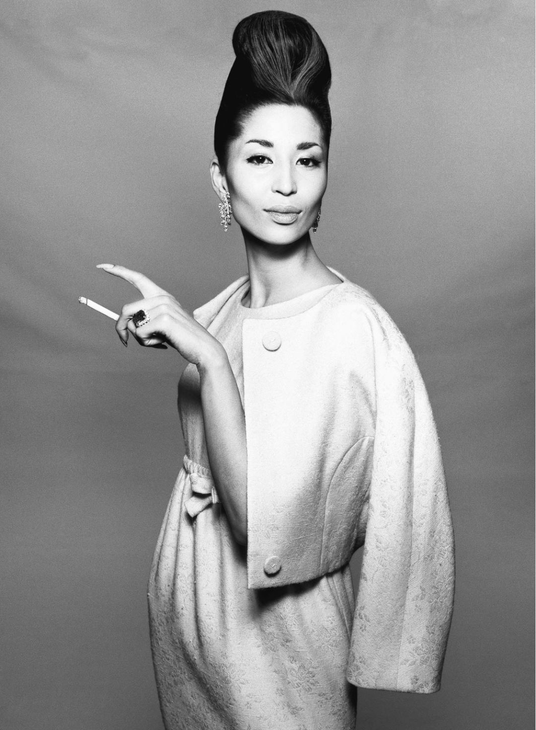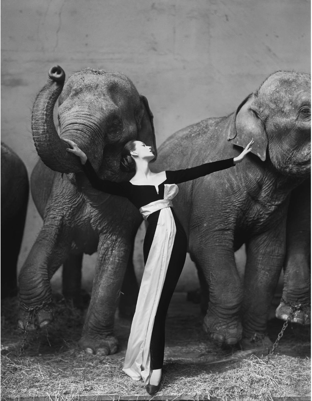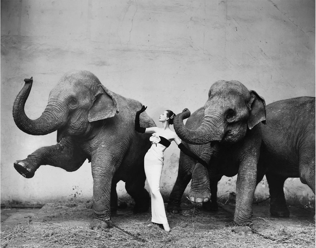 1955年为Dior晚礼服拍摄一系列作品《多维玛与大象》,皮肤厚实的大象比对纤细的女模,强烈的对比,使人产生冲击的视觉效果,至此也为他奠定了时尚地位。