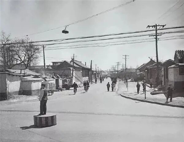 1950年,东长安街东口(东单路口)西北向,可见路口中心交通岗,东单北大街和东单市场。