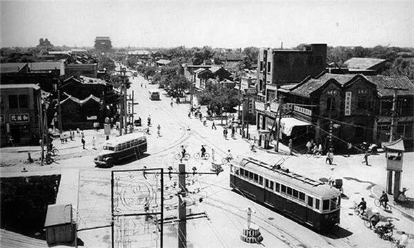1952年,西交民巷东口,振武牌楼还在。通行有轨电车1路,由永定门开往西直门。