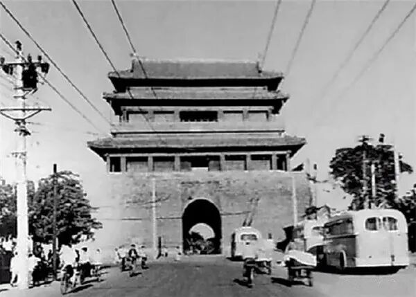 1953年,永定门瓮城已于1951年拆除,1953年春又在城楼西扒开一豁口。