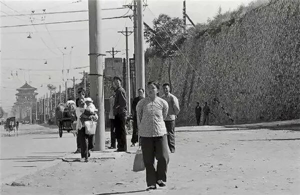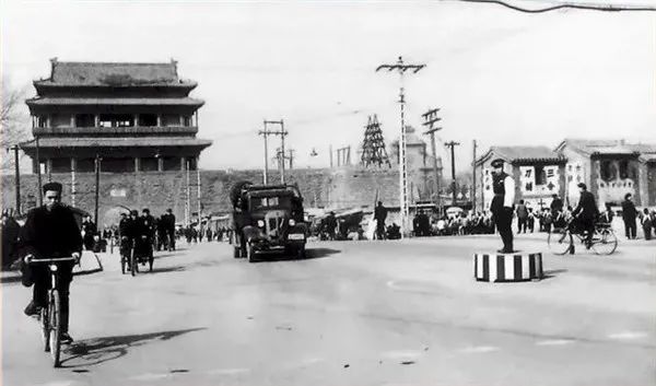 1954年,复兴门(门洞)内顺城街路口,有一个交通岗(北向)。
