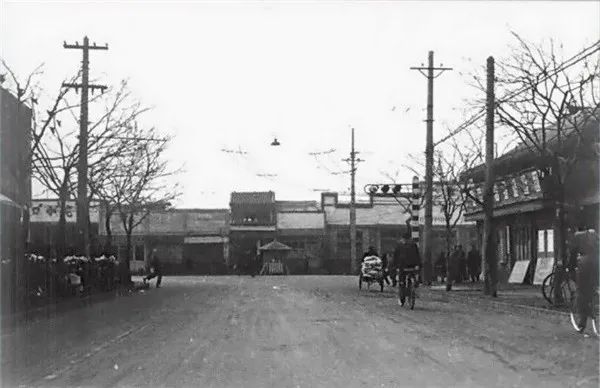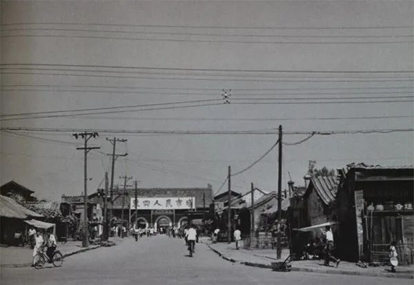 1953年,东四牌楼路口“大市街”牌楼南(北向)。