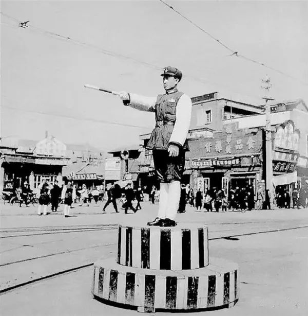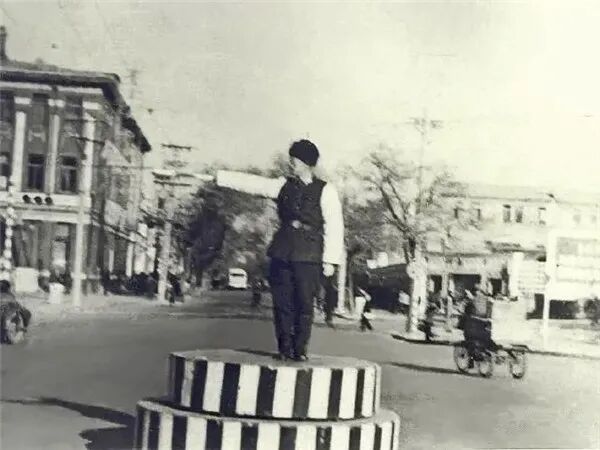 1950年,天安门前西皮市街北口外,交通警察在长安街指挥交通。