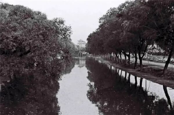 1964年,阜成门以南内城西护城河。已看不到城墙。此照的第二年城楼也被彻底拆除。
