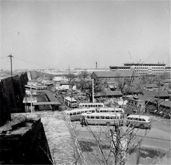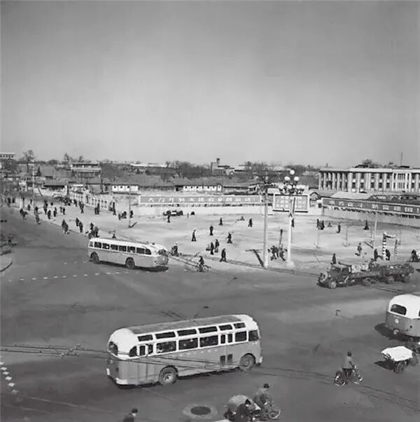 1954年,北京站(前门东车站),站前广场,道路和停车场。