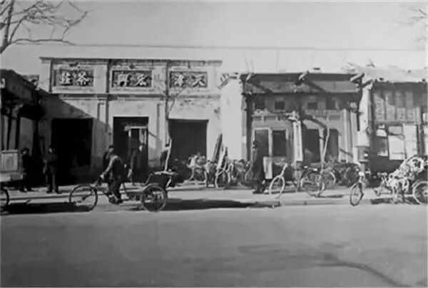 1950年,鼓楼前大街路西烟袋斜街东口。以南为公和魁茶食店,是清真糕点铺。