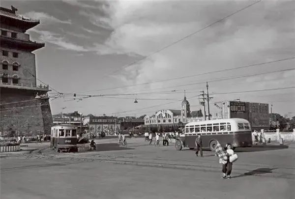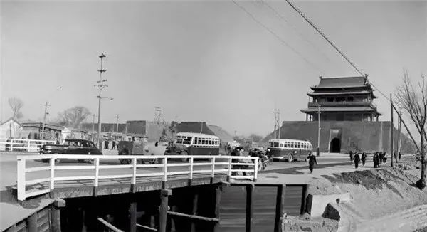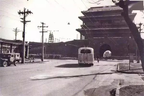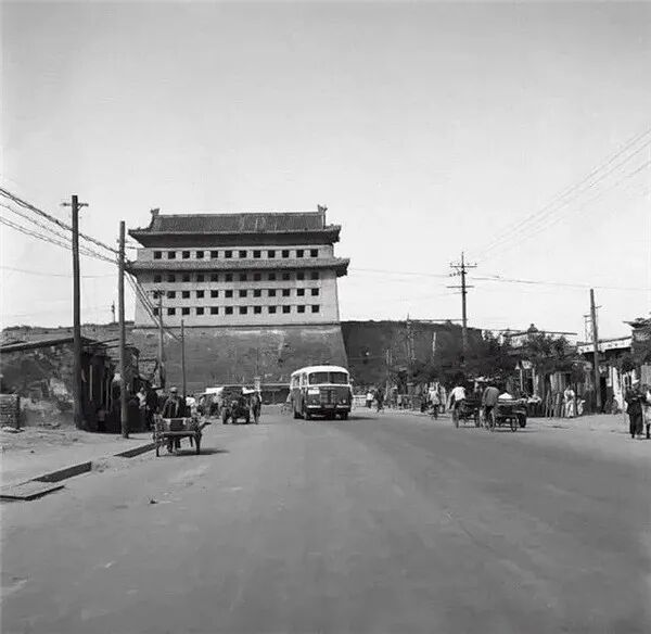1952年,德胜门箭楼西北面。大鼻子公共汽车应是郊区线44路(344路前身),德胜门开往清河。