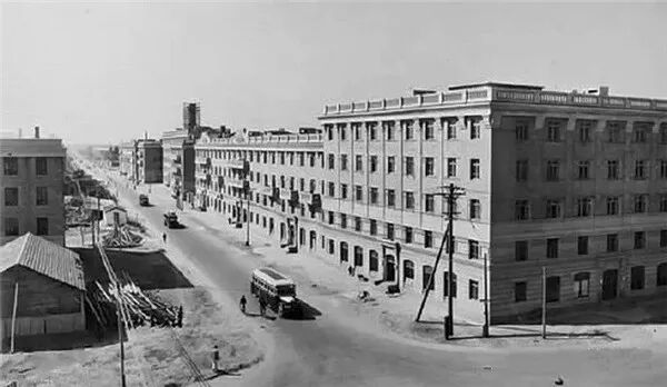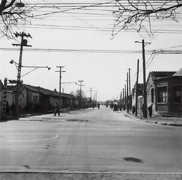 1954年,白广路刚刚通车的街景。是在路东的“黑冶设计院”一侧向西南拍摄。现在画面中的楼房应是国家电网的第三招待所。