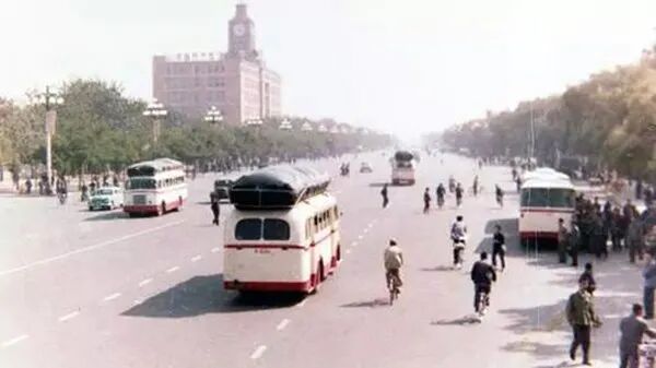 1965年,天安门前,通过天安门广场的公共汽车是4路环行(捷克克罗莎大轿车挂斗),分内外环双向行驶,总站在平安里,算是绕北京皇城的“一环”。