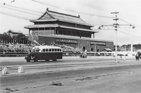 1950年,长安右门南侧,远处的是长安左门。可见电车轨道,长安街上通过天安门前的有轨电车是从长安右门、左门南侧通过。