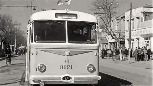 1968年,地安门外大街(鼓楼前大街)。南行的是8路公共汽车,由黄寺开往体育馆(北京)。