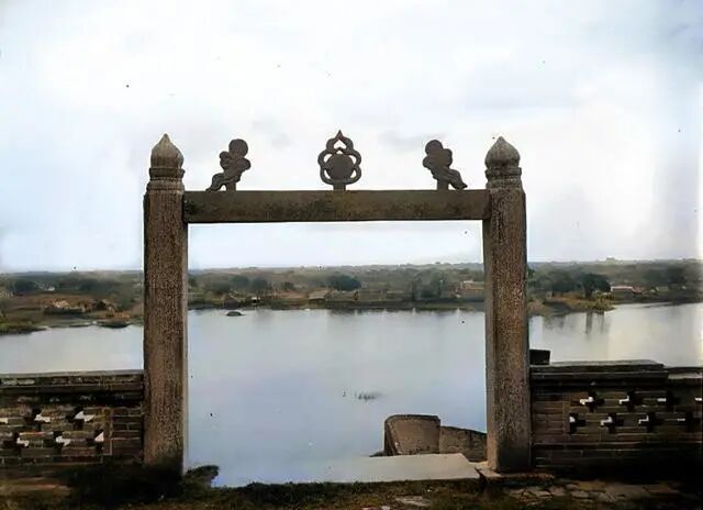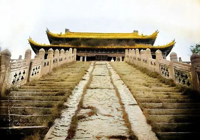 这是一幅由法国人爱德华·沙畹1907年在龙亭前所拍的,它的角度与前面的相片大致相同。