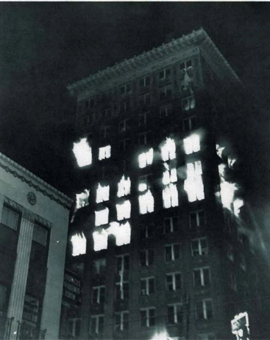 1946年12月7日,Winecoff 酒店成为美国历史上最致命的旅馆火灾现场。在这场大火中119人丧失。照片记录下一名深色头发的女人,掉到三楼的半空中时惊心动魄的画面。