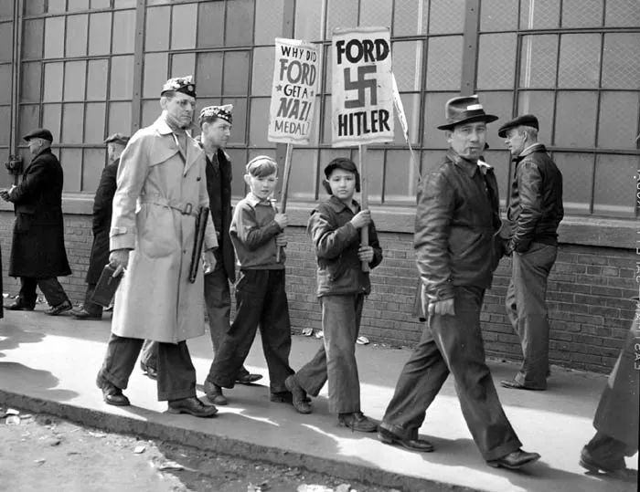 福特汽车公司是最后一家反对工会组织的美国汽车制造商。1941年,福特的安全负责人解雇了八名工会成员,促使福特工人罢工并封锁工厂。事实上,该工厂的工资已经比竞争对手高,还积极招募黑人雇员,并在将薪酬制度方面进行了创新。