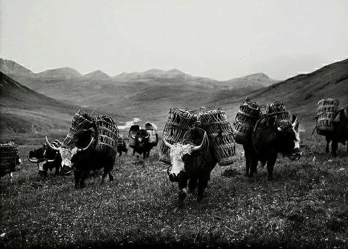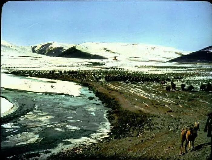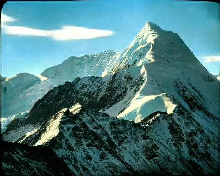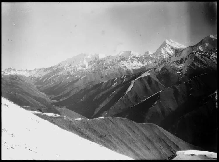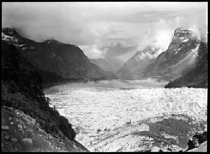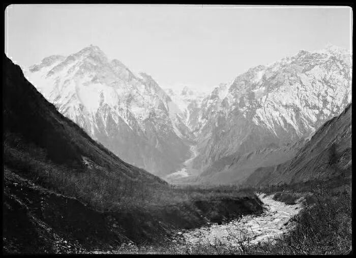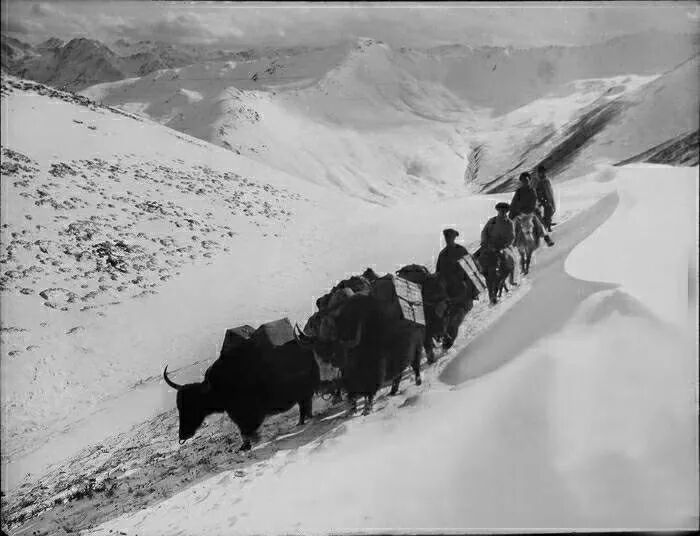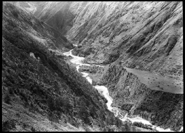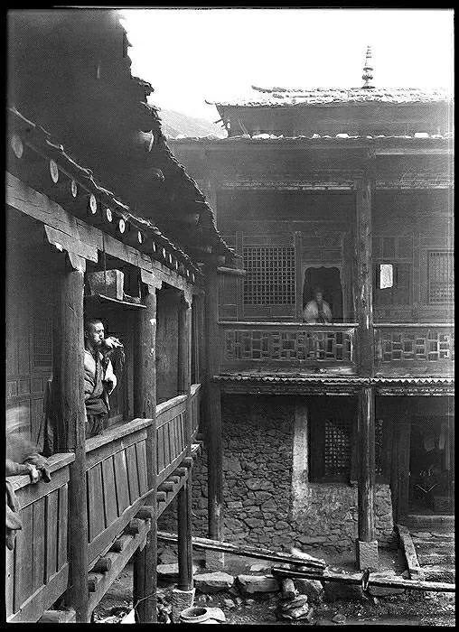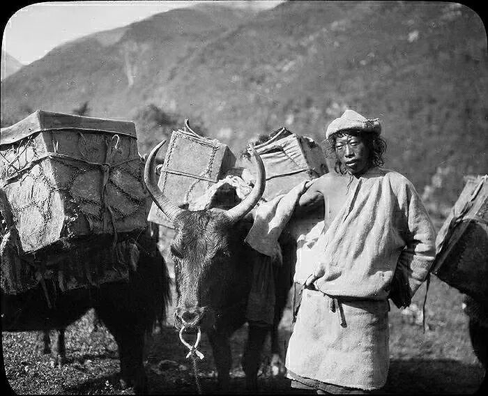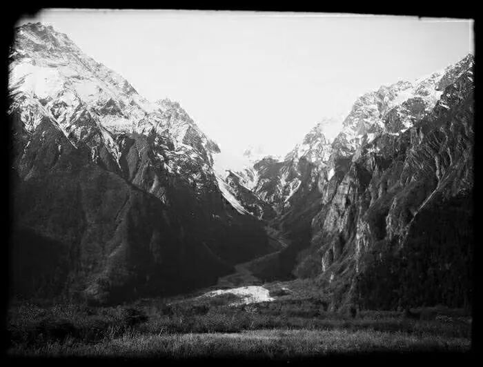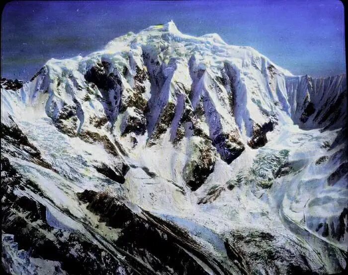 照片提供者说明:由于原照片说明为德文,又极为简单,没有标注拍摄的时间和详细的说明,更没有详尽的有关本次考察的参考资料,只能分析判断拍摄于贡嘎山、贡嘎寺及海螺沟沿途。无法提供准确的拍摄地点。其中彩色照片是人工涂色后制作的幻灯片。