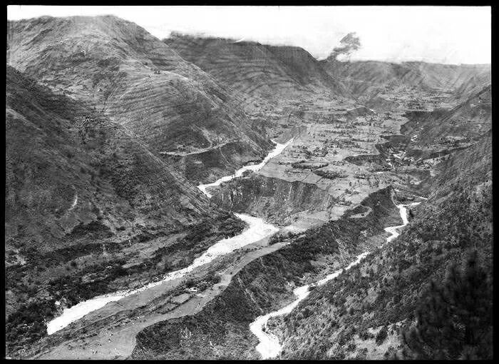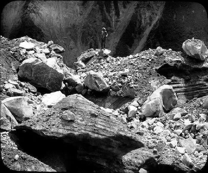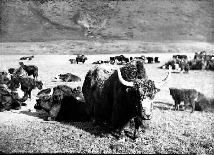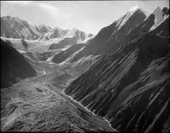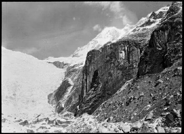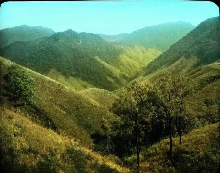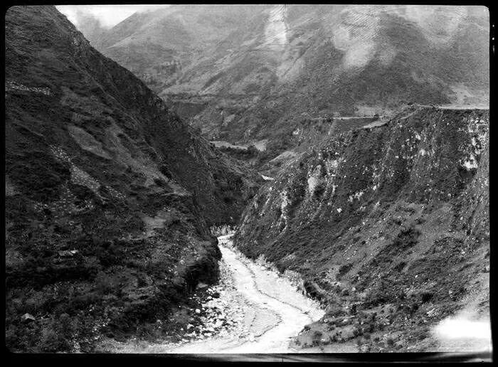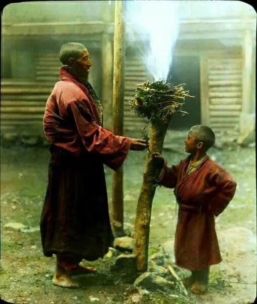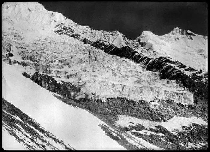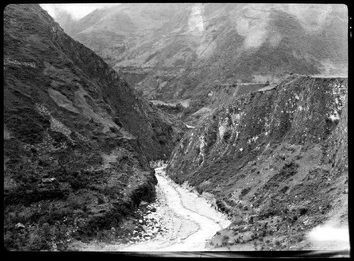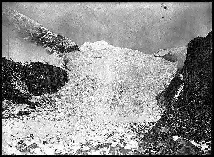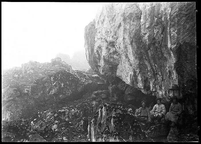 照片提供者说明:由于原照片说明为德文,又极为简单,没有标注拍摄的时间和详细的说明,更没有详尽的有关本次考察的参考资料,只能分析判断拍摄于贡嘎山、贡嘎寺及海螺沟沿途。无法提供准确的拍摄地点。其中彩色照片是人工涂色后制作的幻灯片。