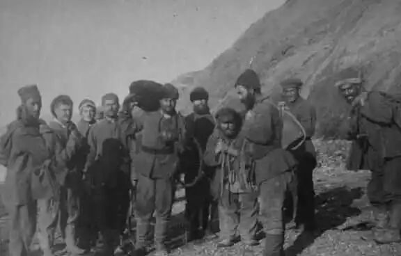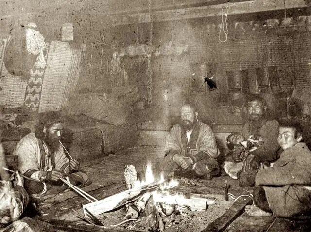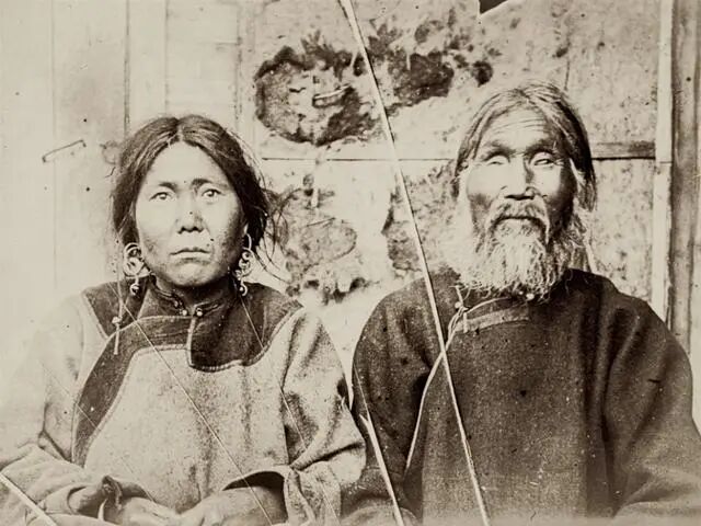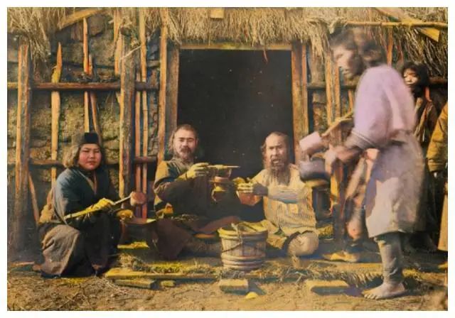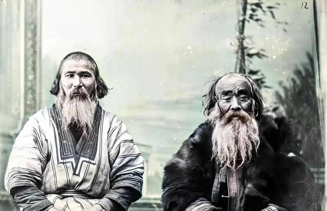 这两个老头是库页岛上面的土著,他们的长相和打扮都是库页岛本土风格,可能是费雅喀族,或者是赫哲族的人。