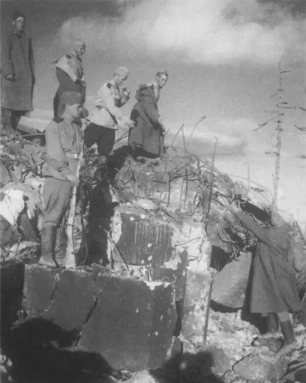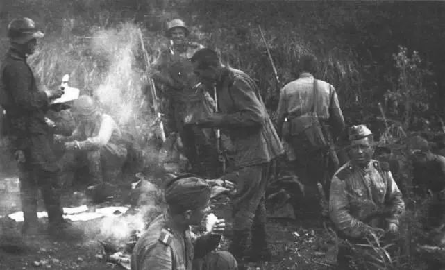 前进中的苏联红军,地上是一名被杀死的日军士兵。