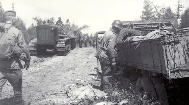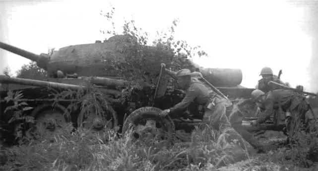 苏军76毫米加农炮和T-34坦克一同前进,向日军发起攻击。