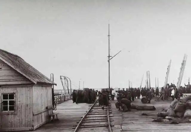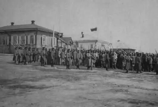为了确保统治权,俄国在岛上驻扎了大量的军队。图上是一群俄国士兵在岛上操练。