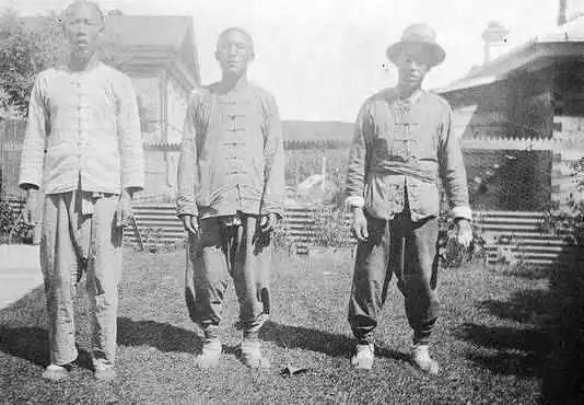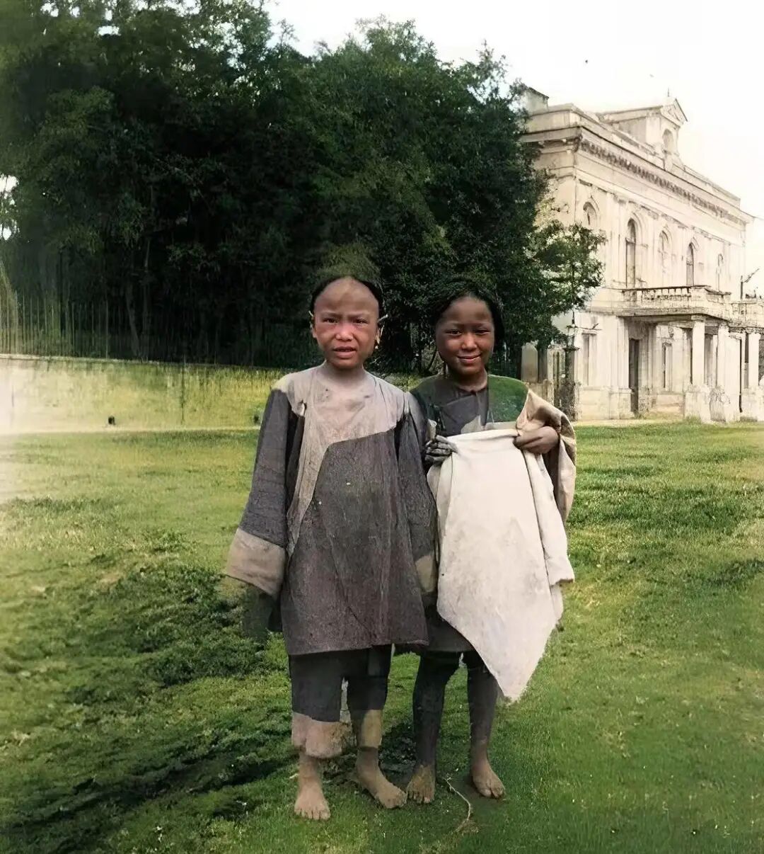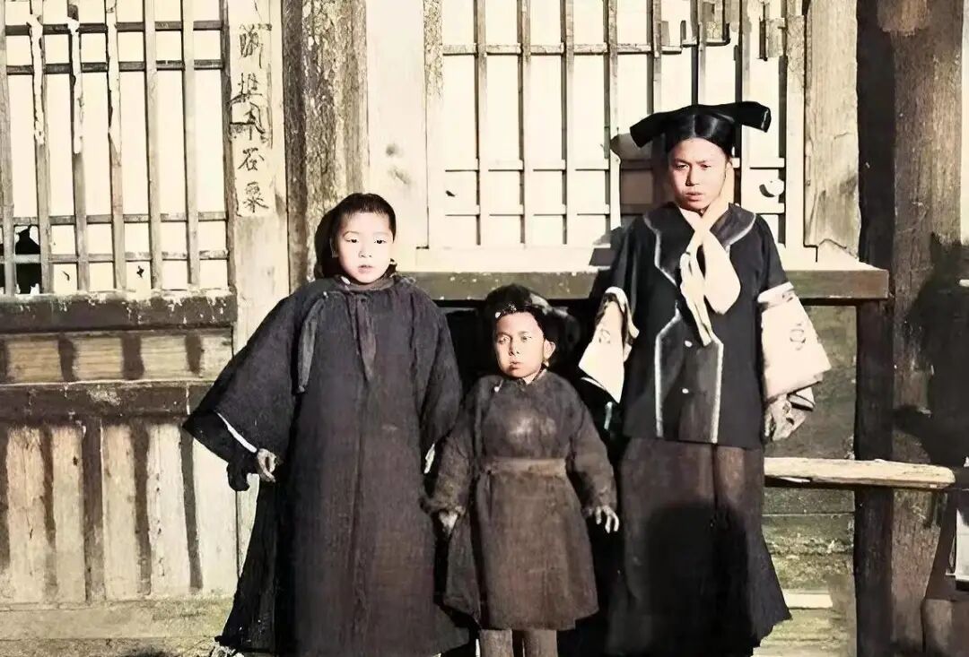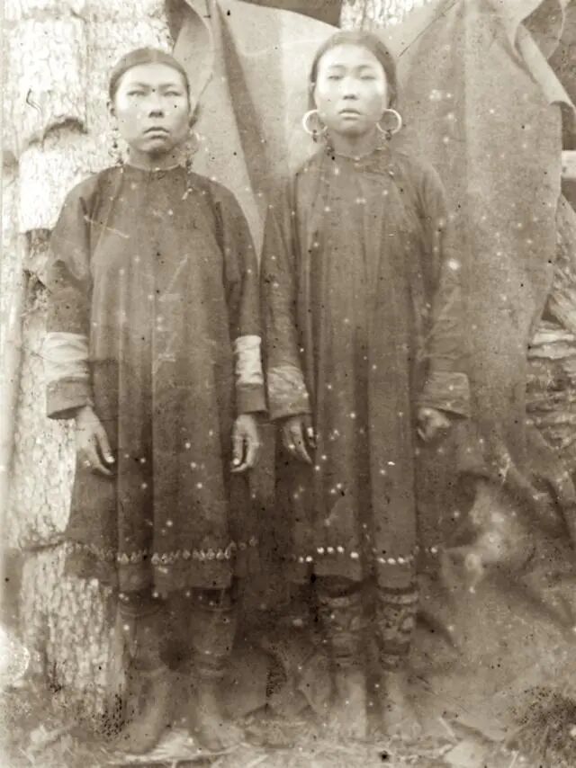 两位小女孩虽然她们穿的是中原服饰,但是她们身后的建筑物已经不是中式的了,这张照片应该是1860年之后在库页岛拍摄的。