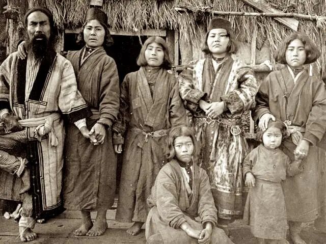 这四位女子也是库页岛南部的阿伊努族,右边女子还是穿的日本人喜欢穿的那种凉鞋。自1295年开始,日本佛教日莲宗的第二代祖师日持上人就曾到库页岛上建立了传据点。