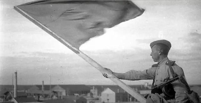 苏军把红旗插在了库页岛的霍尔姆斯克。
