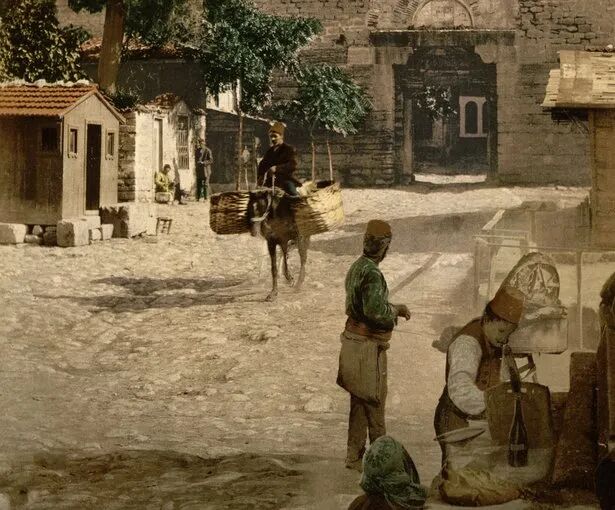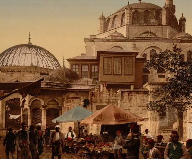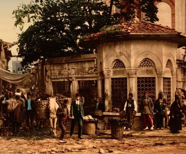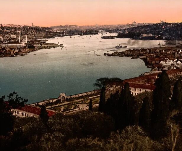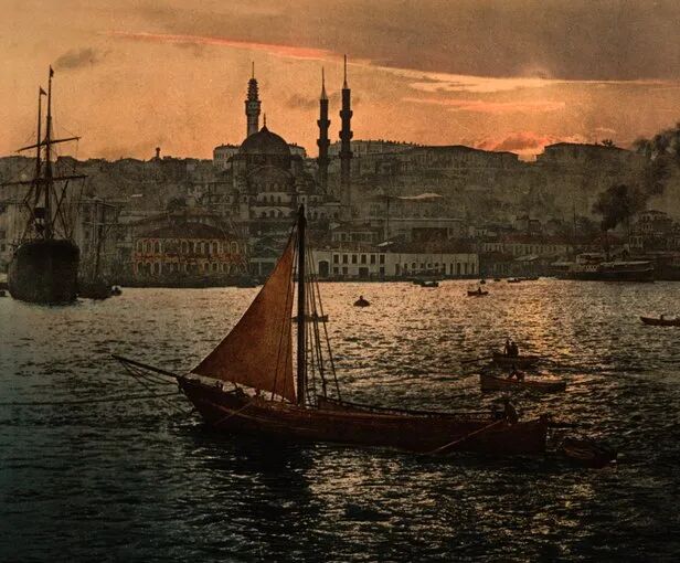 1905年,从土耳其君士坦丁堡的大桥上看到的景观。