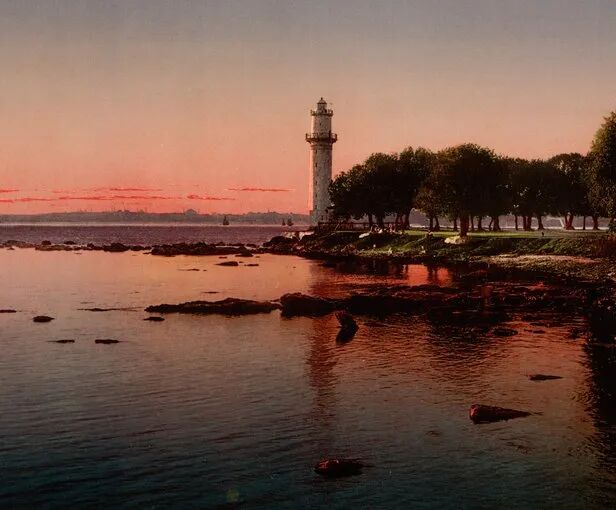 土耳其君士坦丁堡 Sea of Marmora(即马尔马拉海)上的 Feuerbagd'sche(即费内巴切)海角景观。